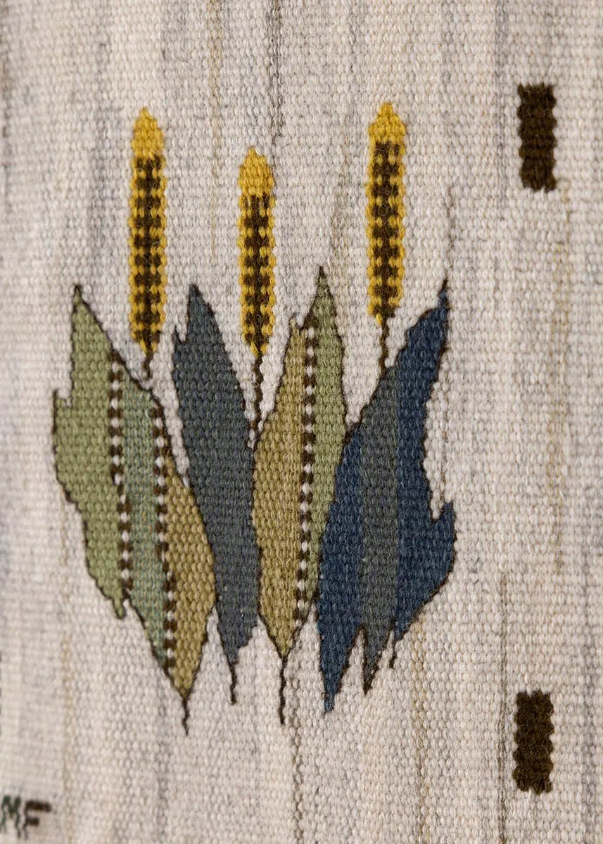Tapestry designed by Märta Måås-Fjetterström in 1939. Handwoven wool on wool warp by Emma Prins at the studio in Båstad, Sweden.