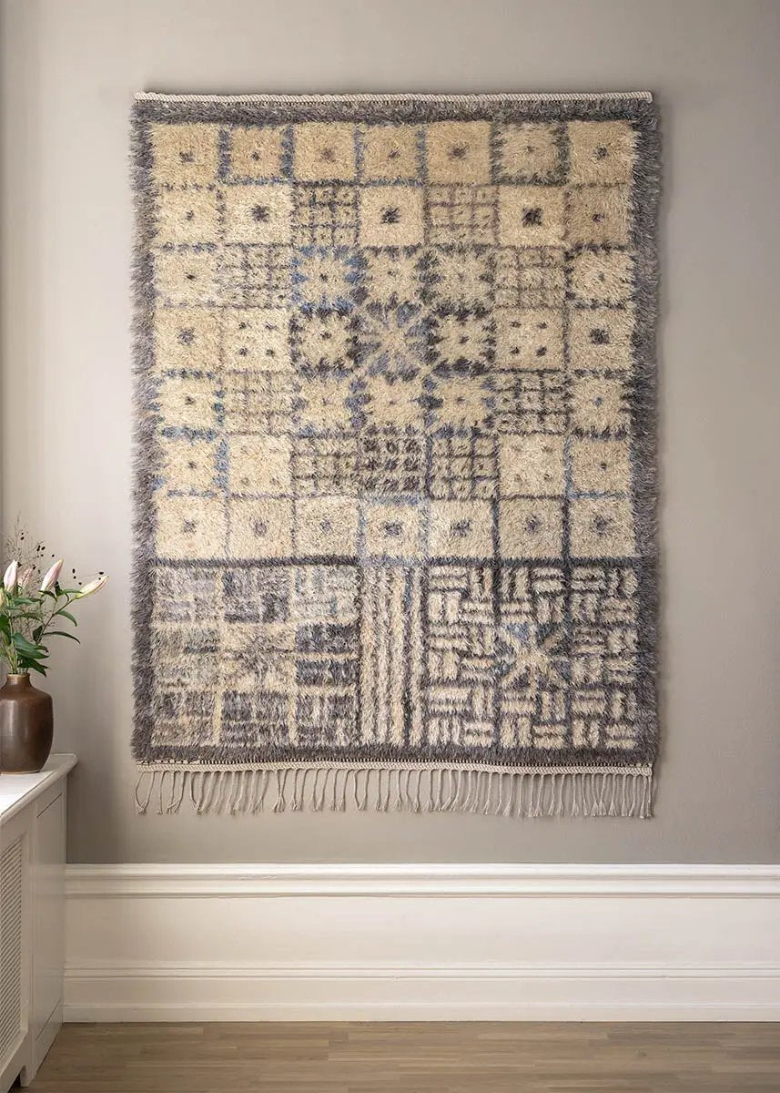 The biennial plant Angelica archangelica inspired Marianne Richter to create this subtle rya rug. Angelica has long been used in both Sámi and Nordic cultures for cooking and medicinal needs.