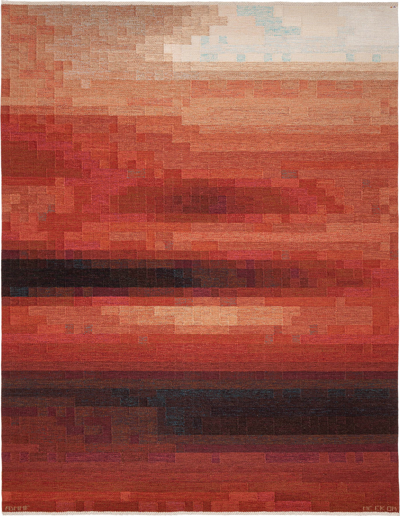 Handwoven in wool on a linen warp, following the artist’s detailed instructions, this rug can be made in a variety of sizes. Each piece is entirely handwoven at our studio in Båstad, Sweden, established in 1919.