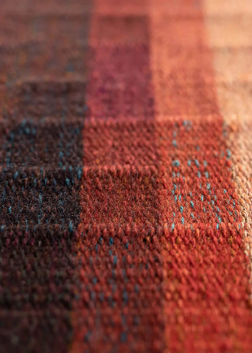 The rug is woven using wool on a linen warp. Wool is naturally stain-resistant and should not be washed too frequently, as this can strip the natural oils that protect the fibers.