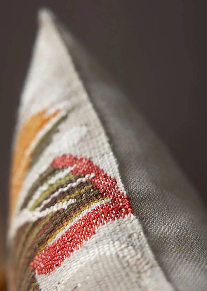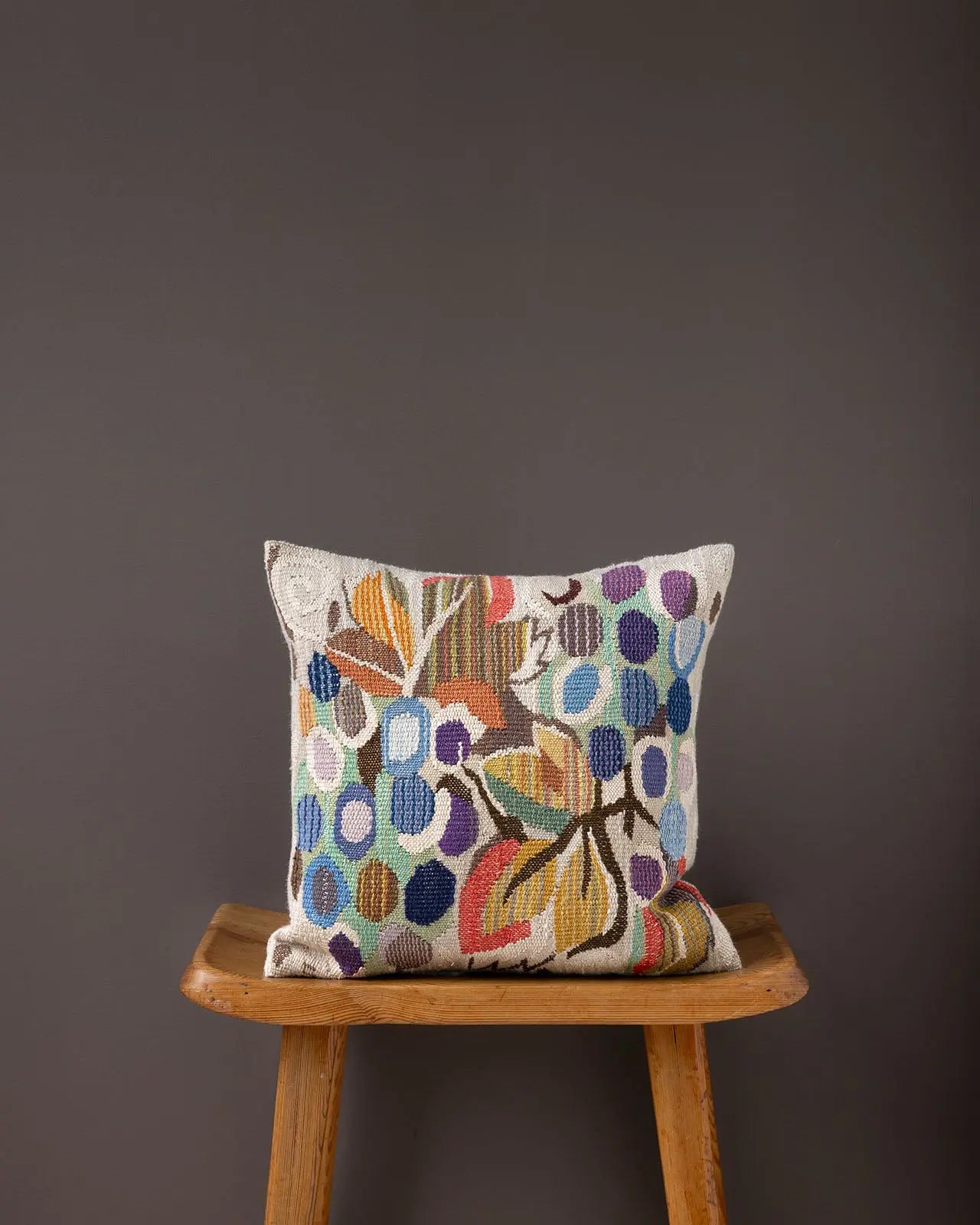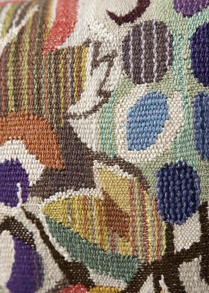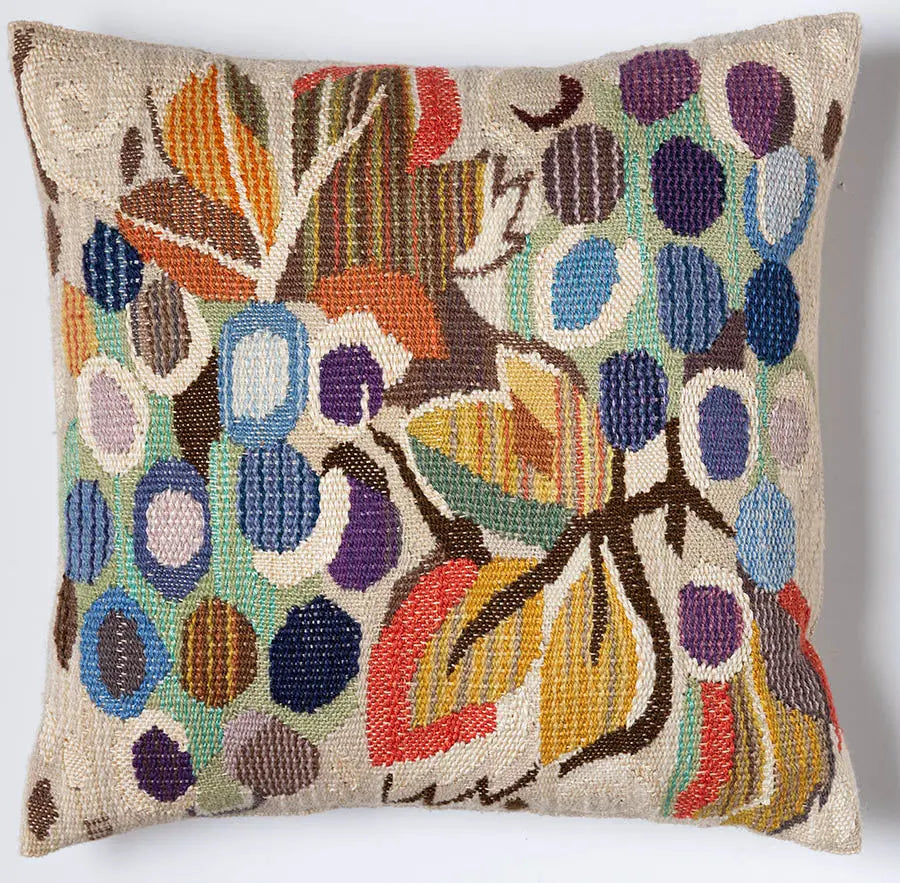 Vintage pillow by Barbro Sprinchorn. Wool and linen on linen warp with linen backing.